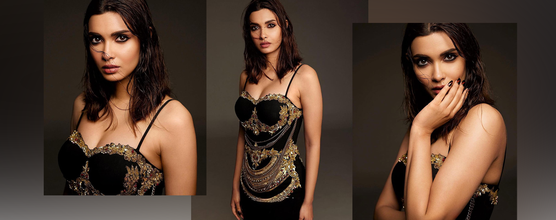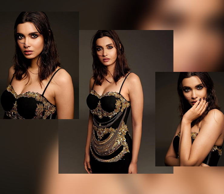 Aditi Pohankar in Burgundy corset gown with frill detailing