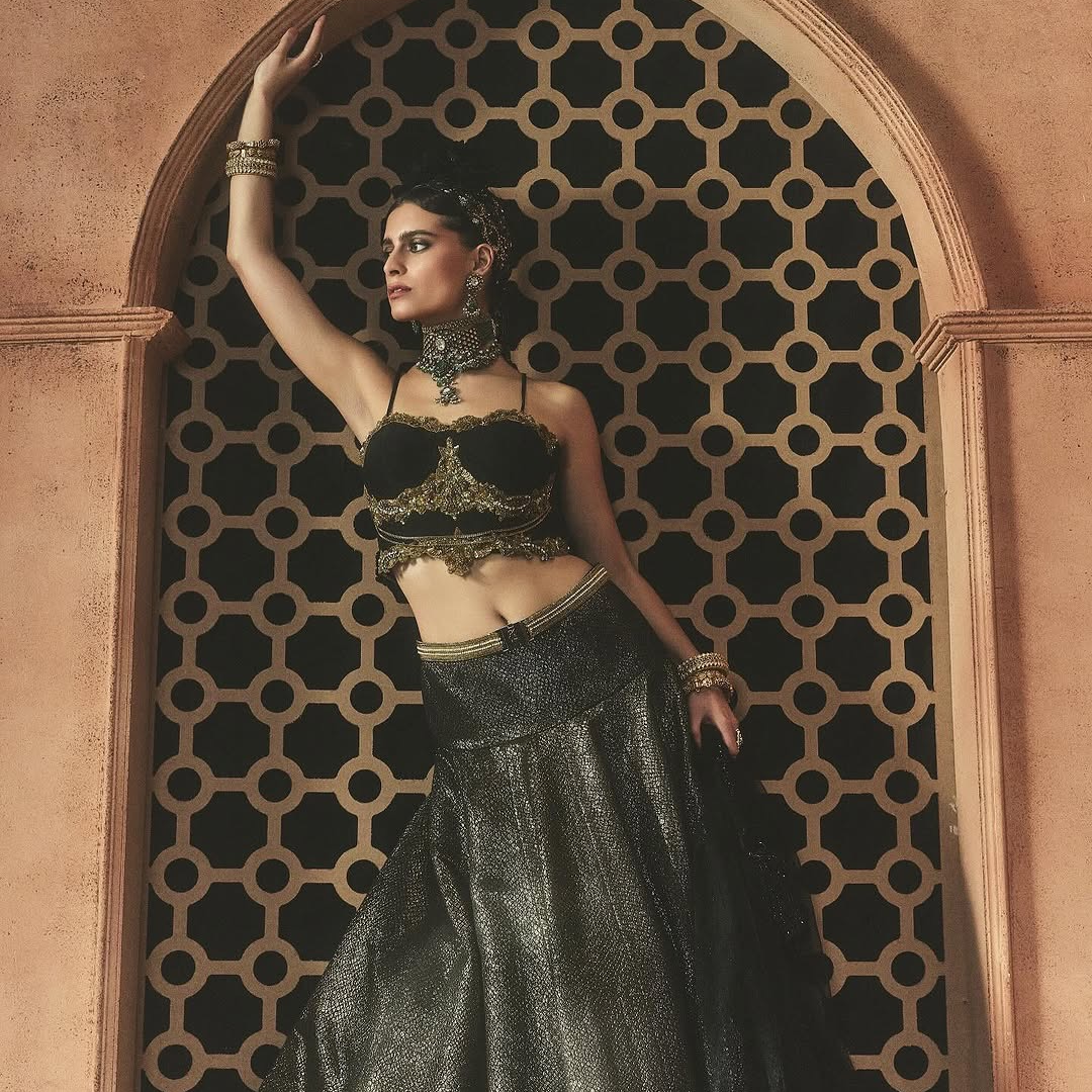 Sonakshi Sinha in embroidered lehenga with bustier & jacket