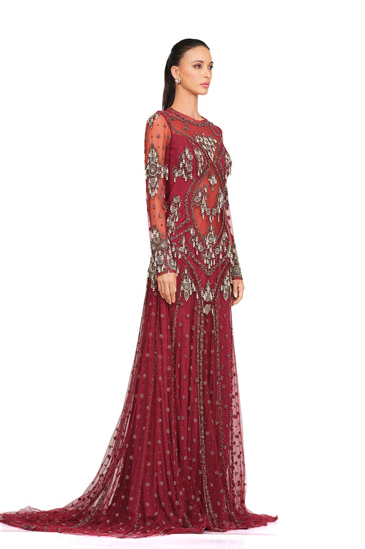 Maroon hand embroidered gown