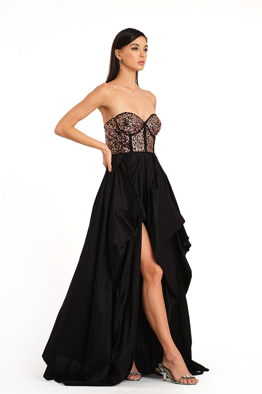 Black and Gold Raw Silk Patch Work Lehenga Set