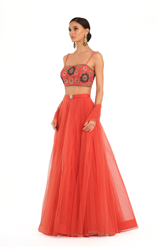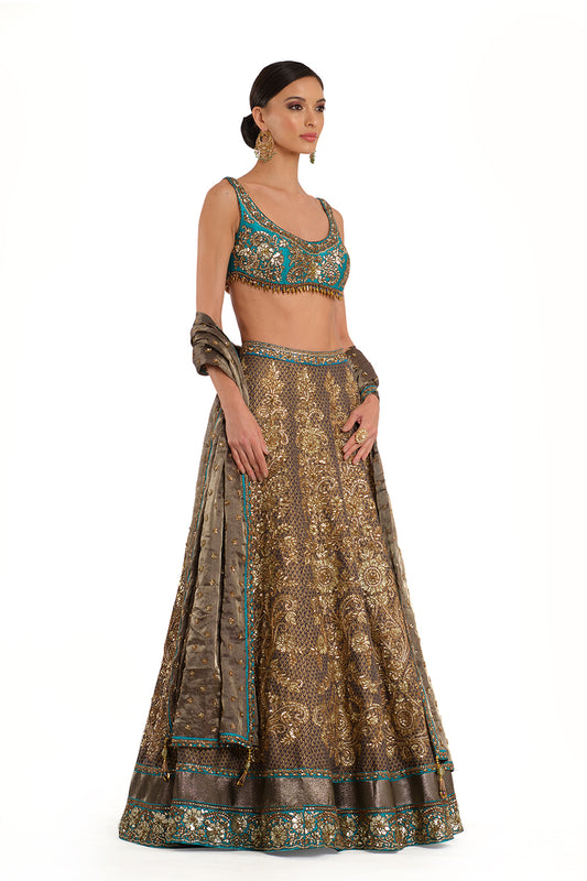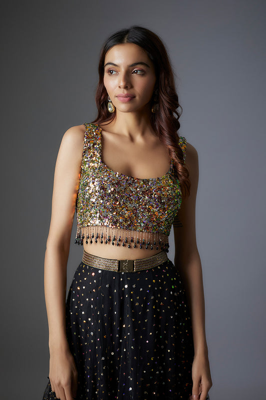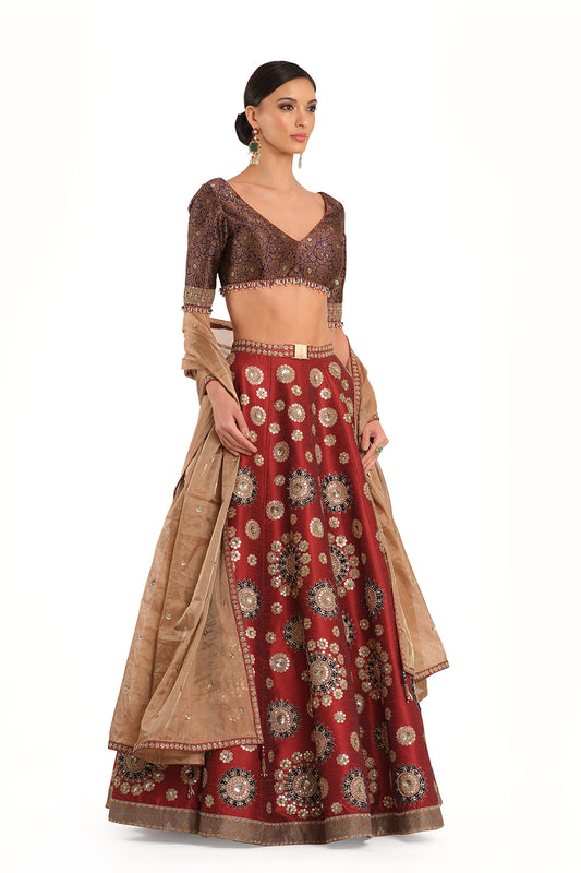 Sequin Embroidered Lehenga & Blouse with Dupatta