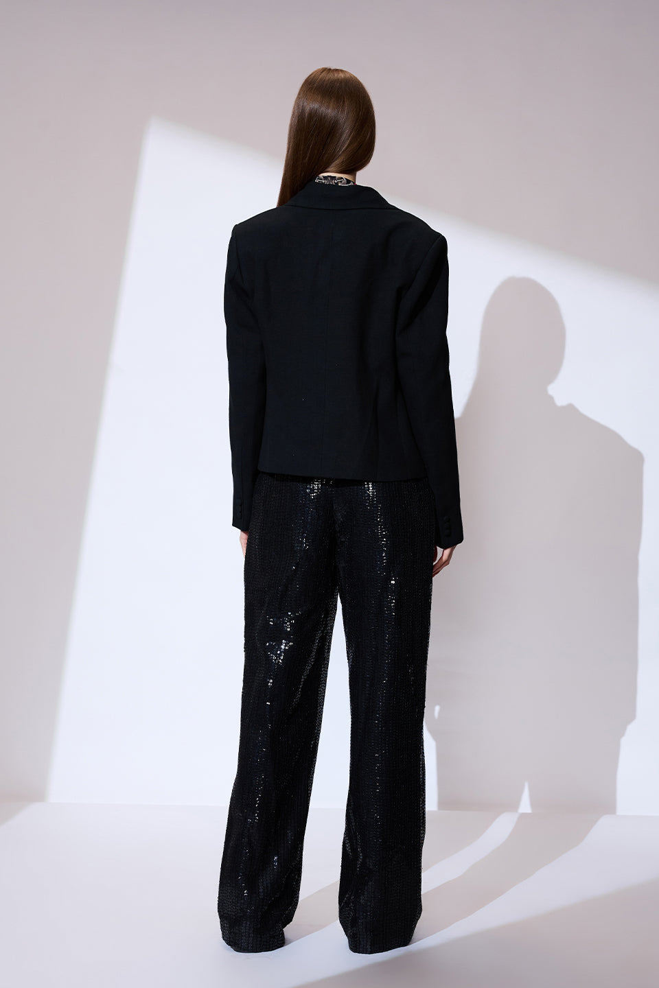 This classic black blazer, made with breathable fabric and adorned with functional pockets, comes in a solid design. We suggest pairing it with one of our exclusive trousers to complete the monochrome look at your next event.
