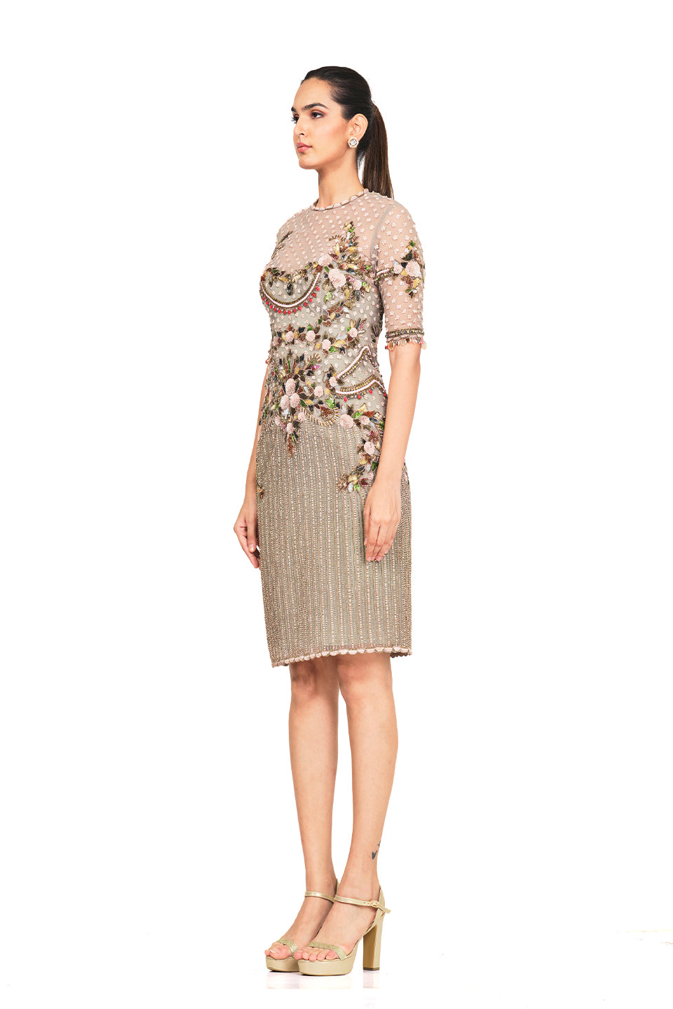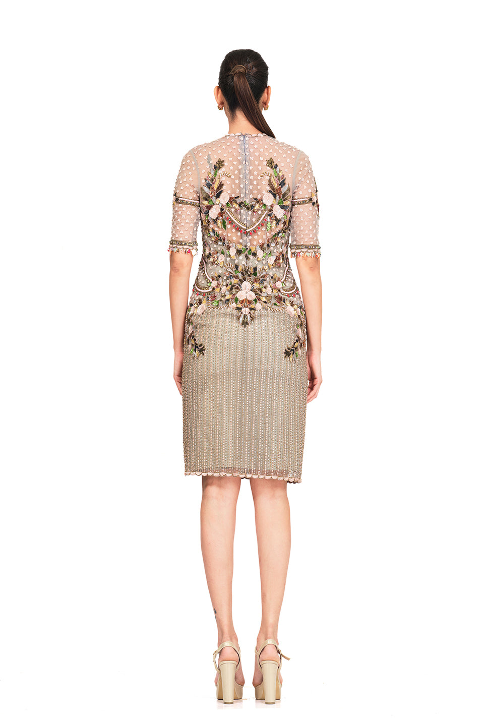 This sleeveless cocktail dress from Rockystar's new collection features an embroidered bodice, scallop detailing on the neckline, sequin on shoulder net, and center back zip closure. Pair with statement earrings & heels for a sophisticated touc