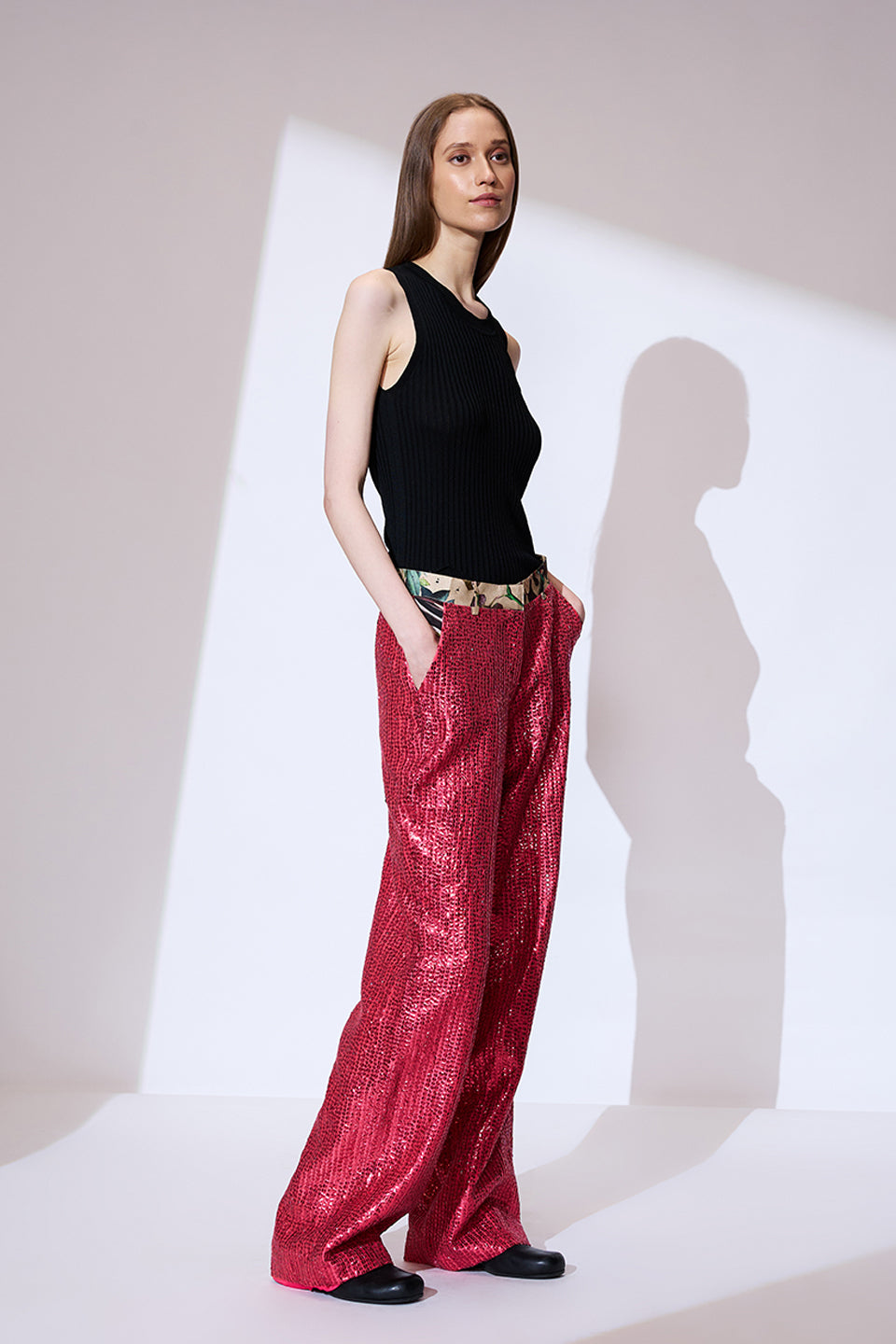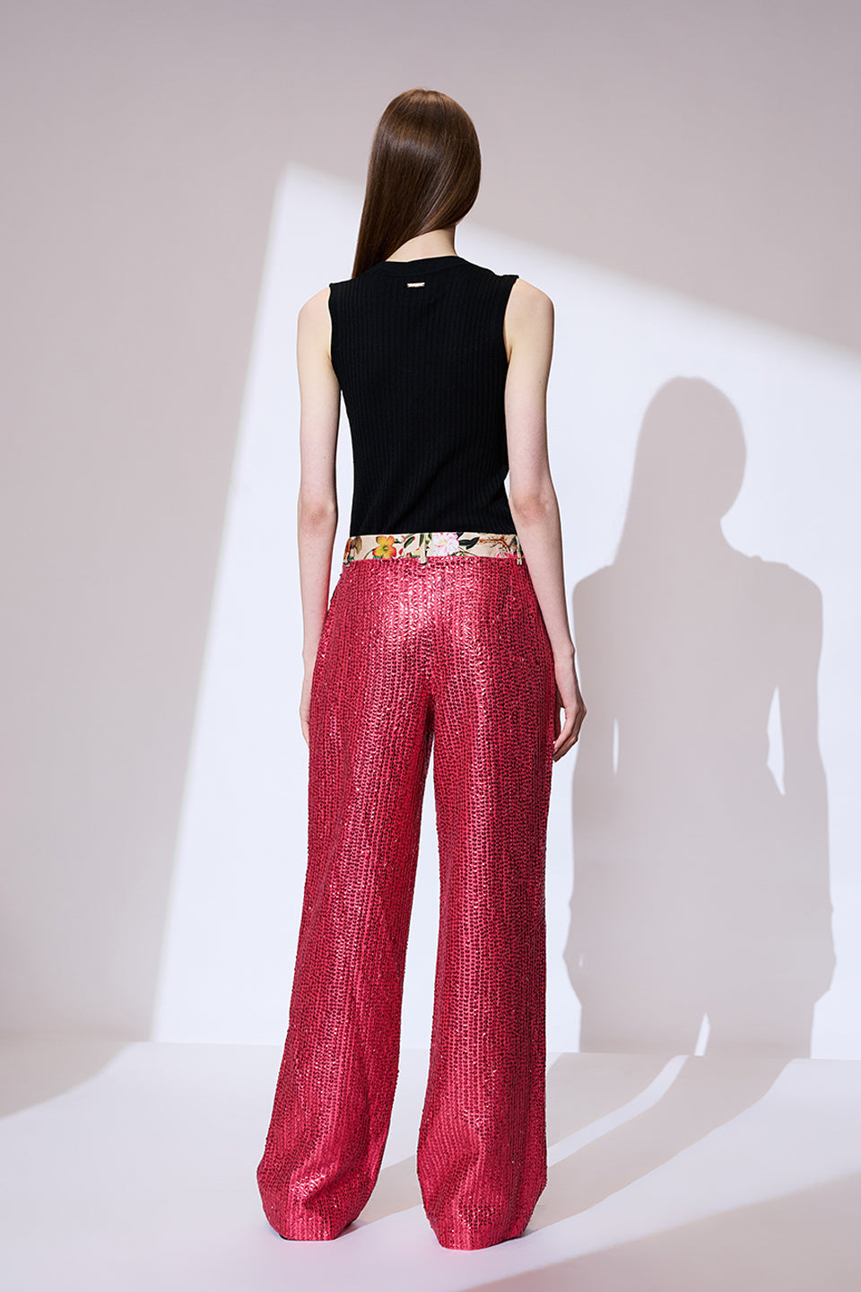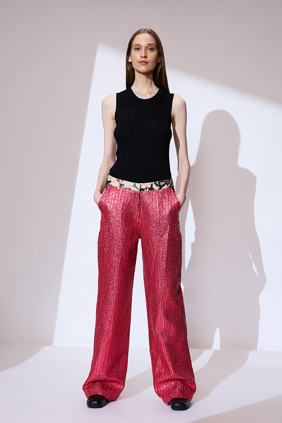Pink sequin embroidered pants